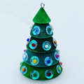 Первое, что приходит на ум при воспоминании о новом годе, это, несомненно, ёлка, поэтому с неё начинается любая зимняя поделка. В данном случае было принято решение перевести традиционное детское изображение дерева в виде последовательности треугольников из двухмерного пространства в трехмерное. Для этого из бумаги вырезаются сектора окружности разного радиуса и скручиваются затем в конус.